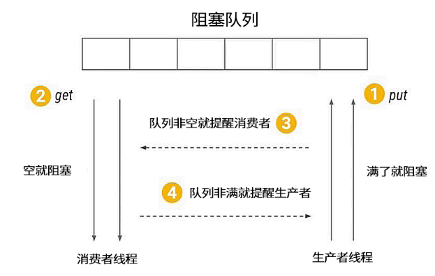 wait()需要被包在while循环里多次判断wait的执行条件,在上面代码中阻塞队列为空时消费者执行wait操作,释放锁资源。